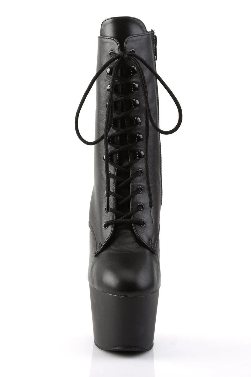 - Matt Black, Real Leather, Platform Lace-Up Front Ankle Boot, Inside Zip Closure
