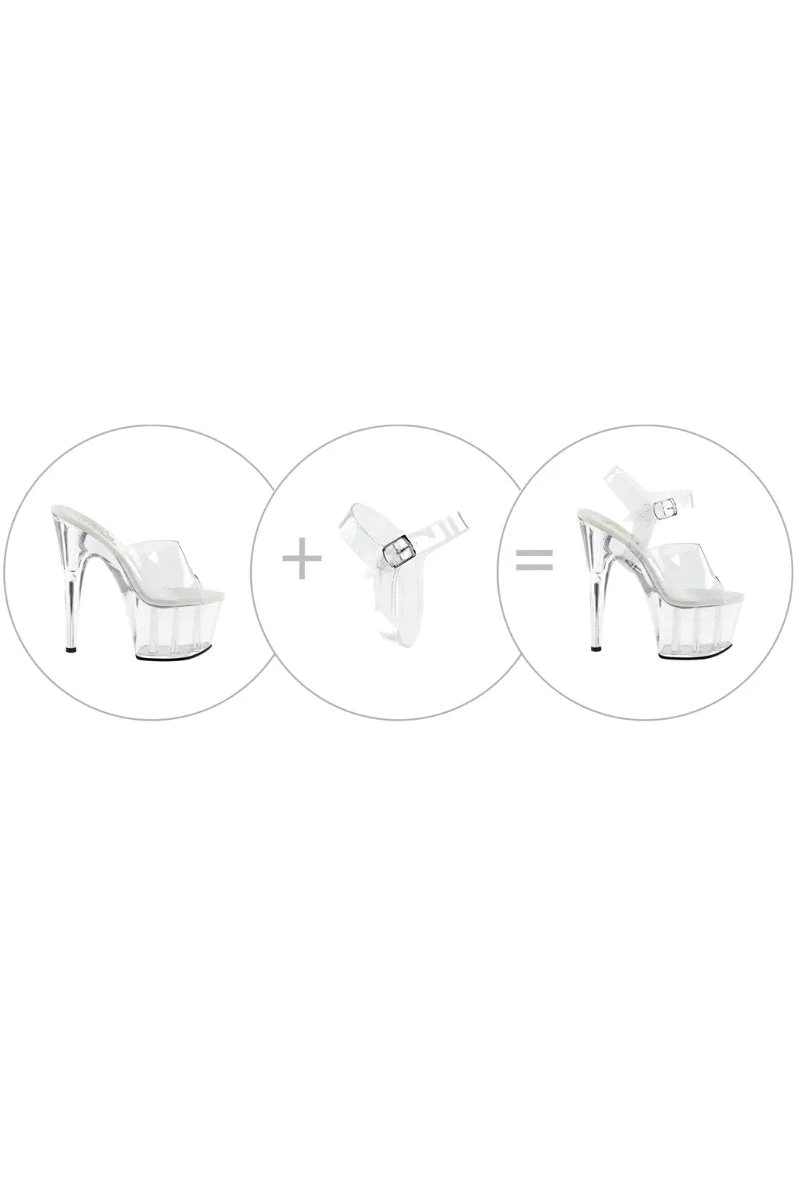 1 pair (2 pieces) clear ankle straps that convert any Pleaser heel into an ankle strap sandal.