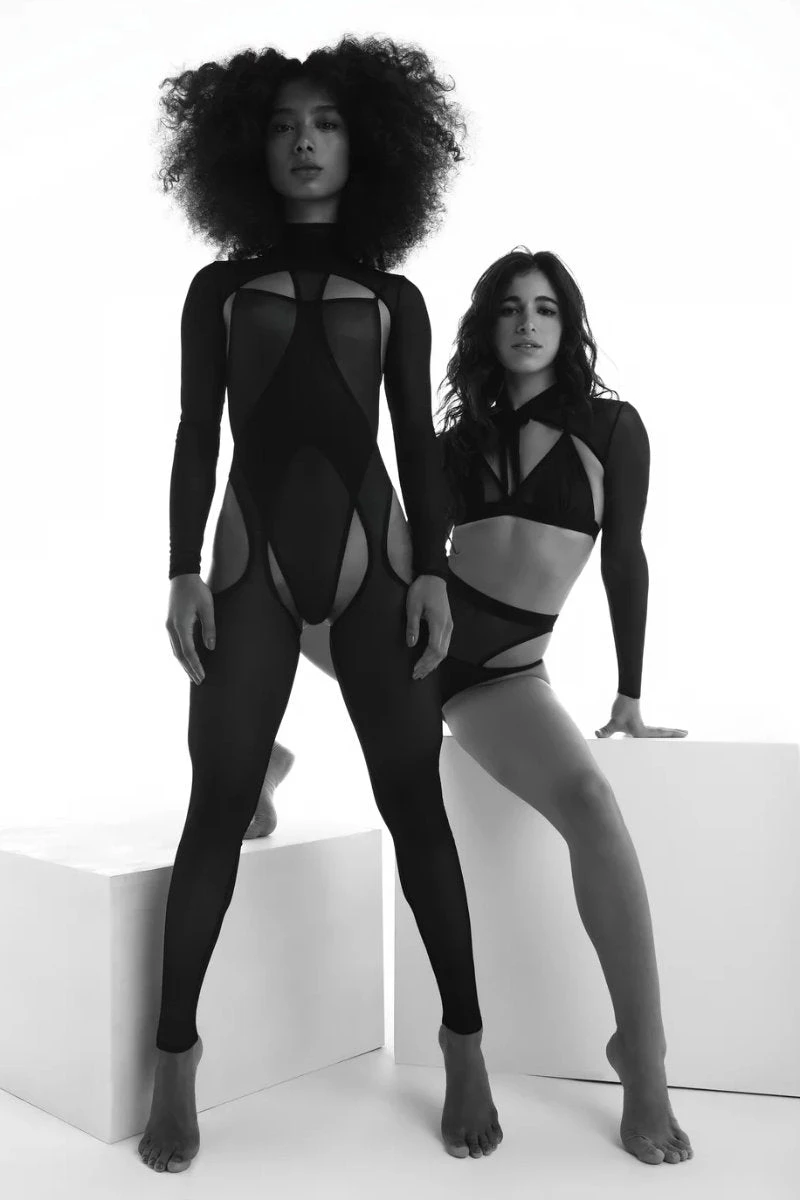 We are serving ethereal circus goddess in Rolling’s Peek-A-Boo Onesie. The sheer mesh tulle fabric allows the features of the bodysuit to peek through the layers.